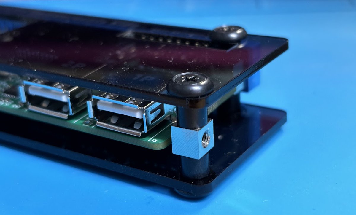 家にあったありあわせのネジやスペーサーだと色や形に統一感が無かったのでアクリルの色にあわせて上から見えるパーツは黒系に統一しました。