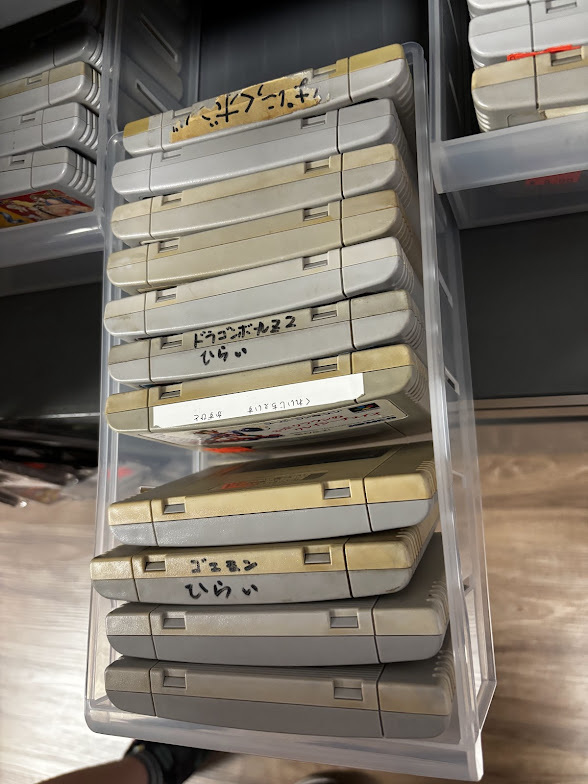 日本で売っている日本版ファミコン、スーパーファミコンのカセットも大量にありました。