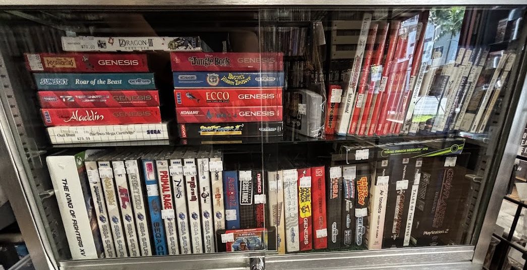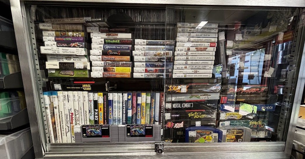 付属品の揃ったものや人気タイトルはガラスケースに収納されているのも日本と同じです。
