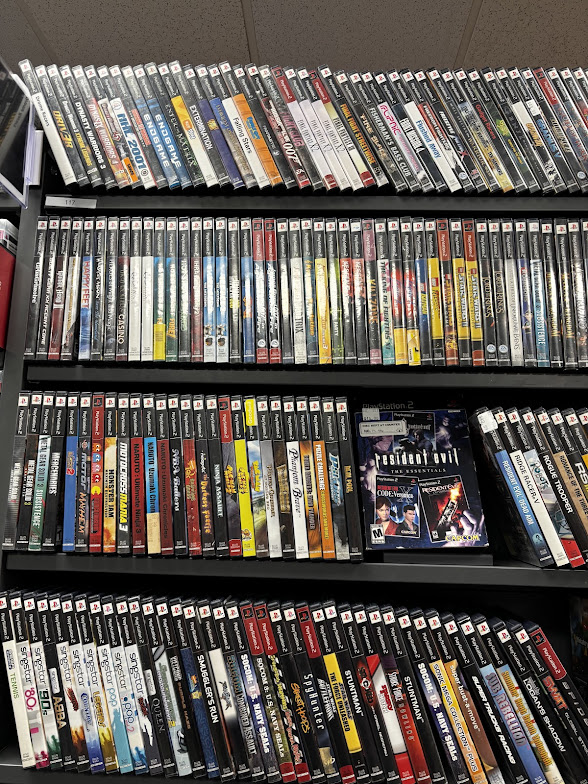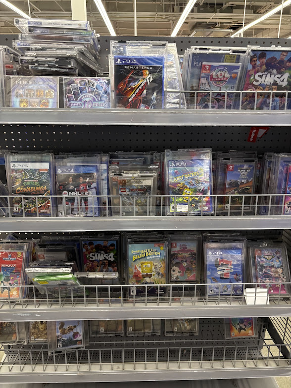 一本づつ防犯ケースに収納されたゲームが棚に陳列されているのは日本でもスーパーマーケットで見かけたことがあるおなじみの陳列方法です。
