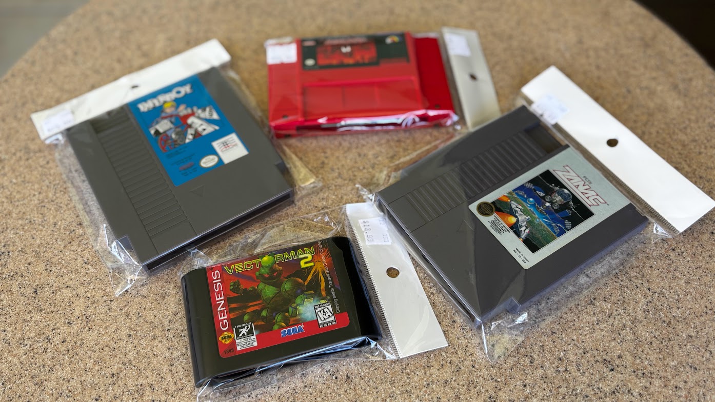 海外版ファミコン(Nintendo Entertainment System(ニンテンドー・エンターテインメント・システム、略称:NES))のソフトが50タイトルくらいありました。